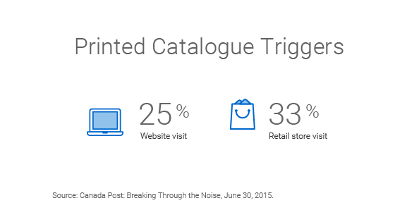 Twenty-five per cent of printed catalogues trigger a website visit, and 33% prompt a visit to a retail store.3 Thanks to technologies like AR, they no longer operate in an inanimate space, and they play well with other channels.