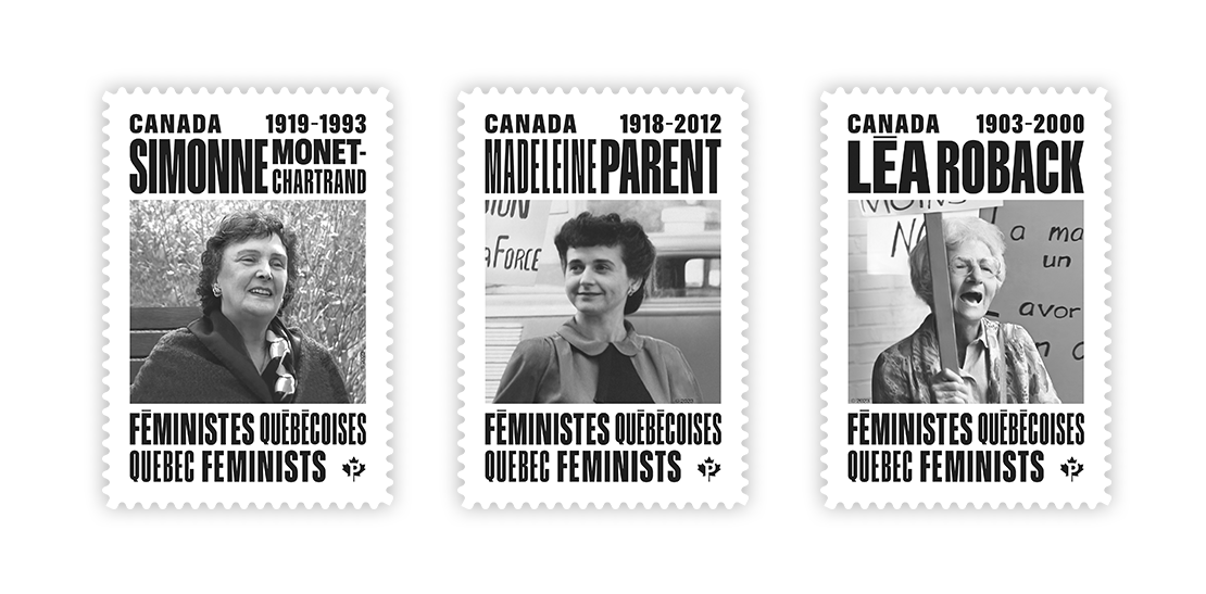 The new stamp issue highlights the lives and achievements of three Quebec women who were lifelong advocates for workers’ and women’s rights and other causes: Léa Roback, Madeleine Parent and Simonne Monet-Chartrand. Their activism foreshadowed many of the advancements made in equality and justice in Canada.